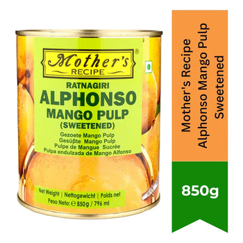 Mother's Recipe Alphonso Mango Pulp (Sweetened) - 850g Brand: Mother's Recipe About the product: Mangoes are loved by all but sadly mangoes are available only during...