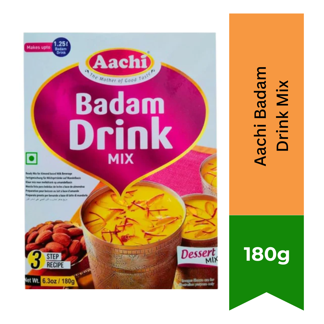 Aachi's Badam Drink Mix is a Health Drink liked by all from children to adults. It contains Milk Solid , Cashews, Almonds, Cardamom , Saffron and sugar.