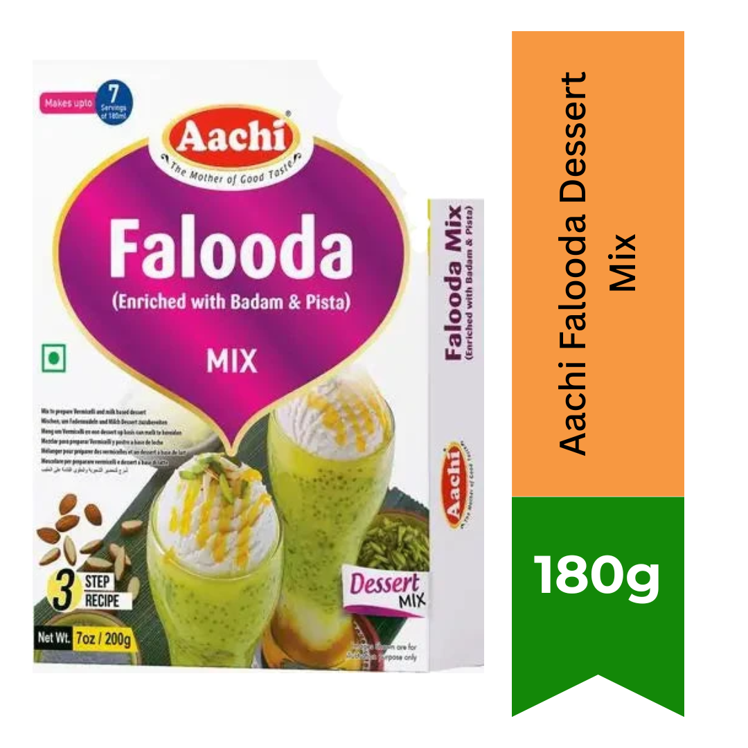 About the ProductMaking Falooda at home can't get easier than this and whip up yummy Falooda quickly with this Aachi Falooda mix that is enriched with Badam and Pista.