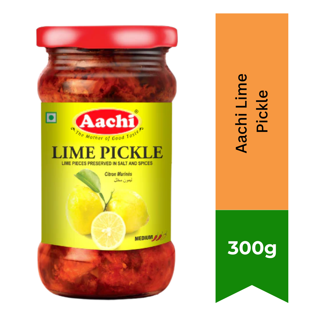 Aachi lime or lemon pickle is a popular pickle in India. Lime or lemon pickle accompanies well with snacks like mathri, papad or with meals. Lime pickle is especially considered as appetizing and relieving stomach aches.