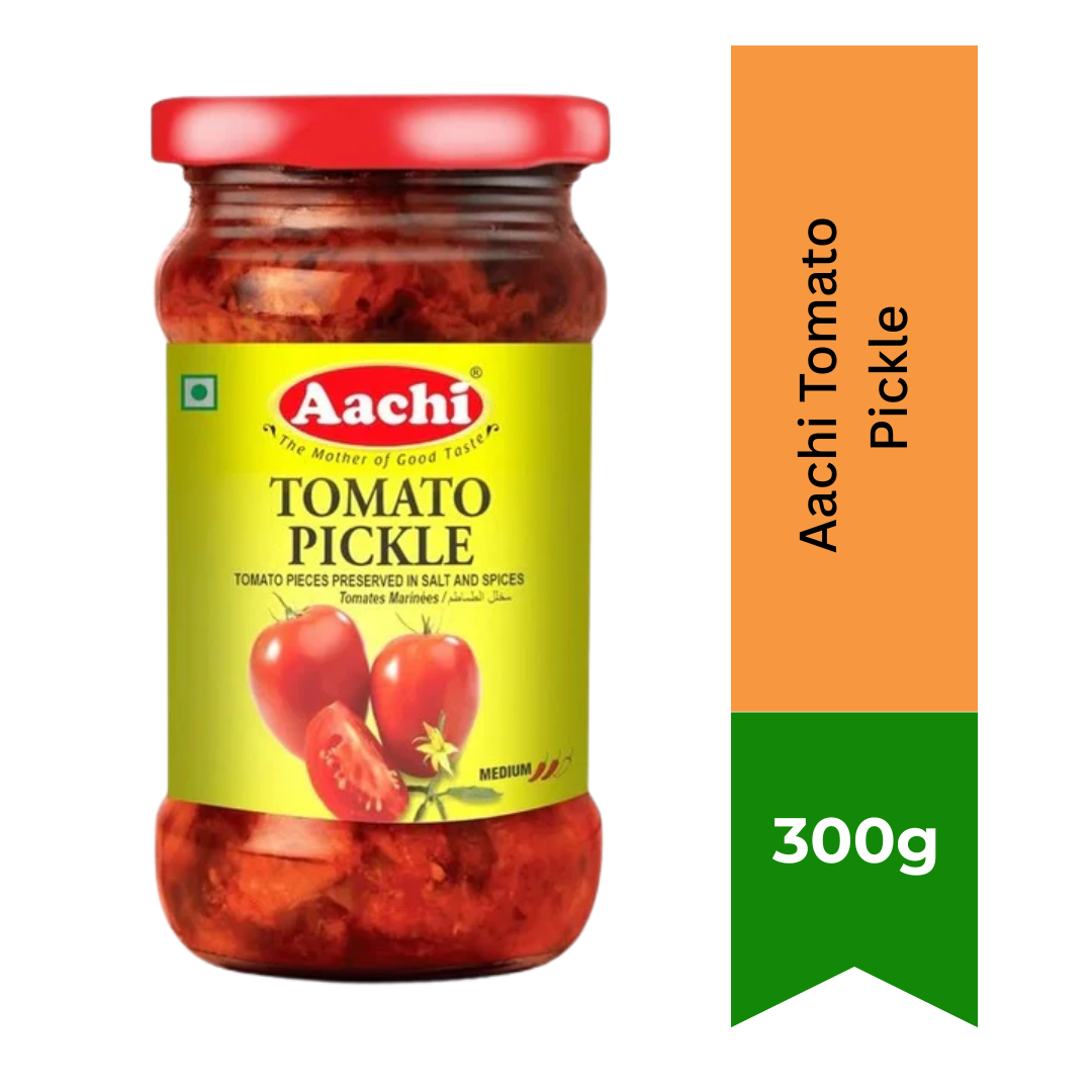 Tomato pickle is sweet, spicy tomato relish. Aachi Tomato pickle recipe contains no garlic. Tomato pickle is also known as Tomato Thokku or Thakkali Thokku in Tamil and goes well with meals, curd rice or papadum. Taste the tangy, juicy, extremely rich in taste Aachi Tomato Pickle made up using the fresh tomato pieces, Tamarind, Salt, Water, Spices, Chilli, Mustard, Whole red chillies, Turmeric, Sesame oil, Cottonseed oil and so on. Aachi Recipe aims to serve a product of choice and convenience while being recognized as a household name. It is to provide their customers with quality products made with the best ingredients that meets market demands. grab the Tasty and Delicious Tomato Pickles with everyone.