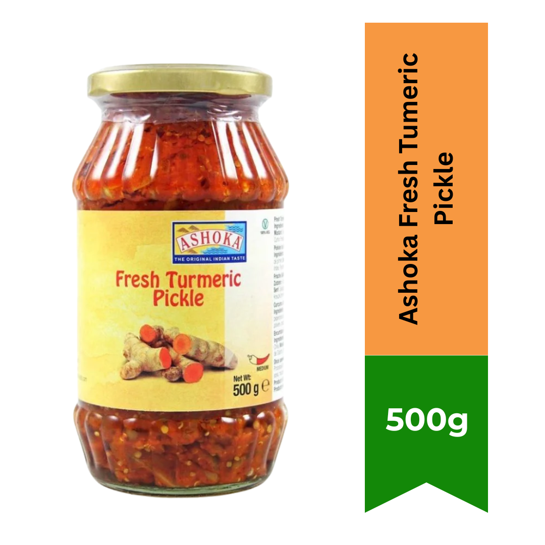 Ashoka pickles are a tasty preparation of carefully chosen fresh and exotic fruits and vegetables, seasoned with a perfect blend of Indian spices, to give you with mouthwatering taste and incredible aroma. Ashoka Fresh Turmeric Pickle is a tasty preparation of fresh turmeric blended with traditional Indian spices. Traditionally served as an accompaniment to Indian meals.