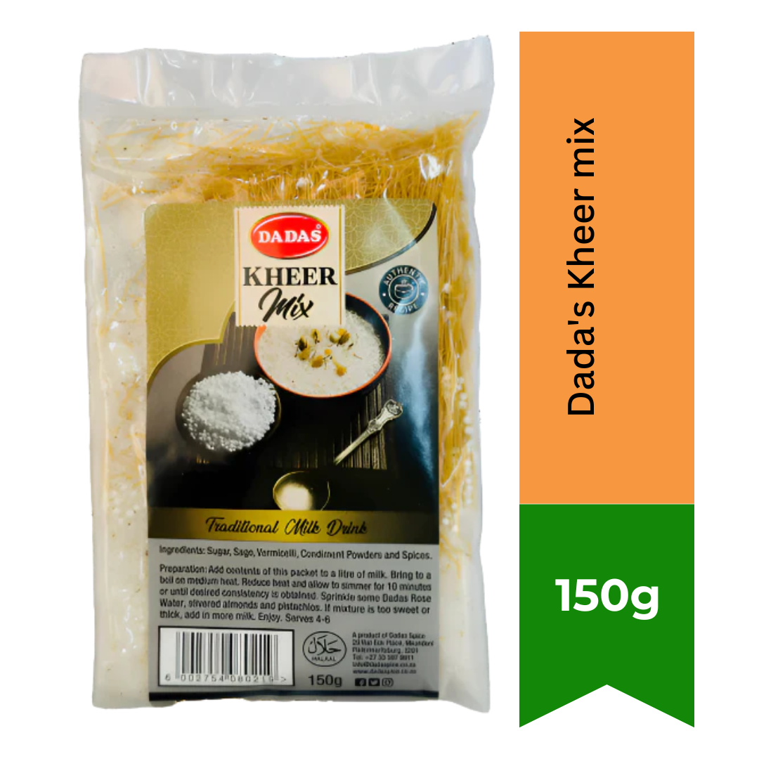 add contents of this packet to a litre of milk.bring to a boil on medium heat.reduce heat and allow to simmer for 10 minutes or until desired consistency is obtained.sprinkle some dadas rose water,silverd almonds and pistachios.if mixture is too sweet or thick,add in more milk.enjoy.serves 4-6INGREDIENTS :- SUGAR,SAGO,VERMICELLI,CONDIMENT POWDERS AND SPICES
