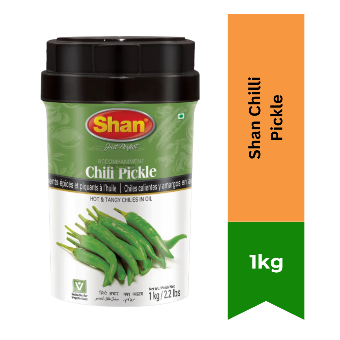 Shan Chilli Pickle, prepared with world's finest green chilies, marinated and prickled with a rich blend of spices is a spicy accompaniment to your favourite meals.