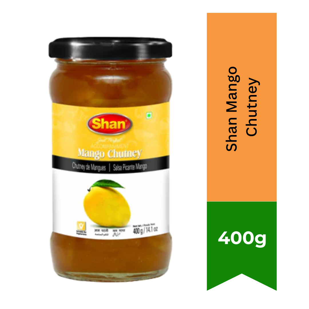 Shan Mango Chutney, made with juicy mango pulp and blended with zesty spices, is an ideal accompaniment for your snacks.