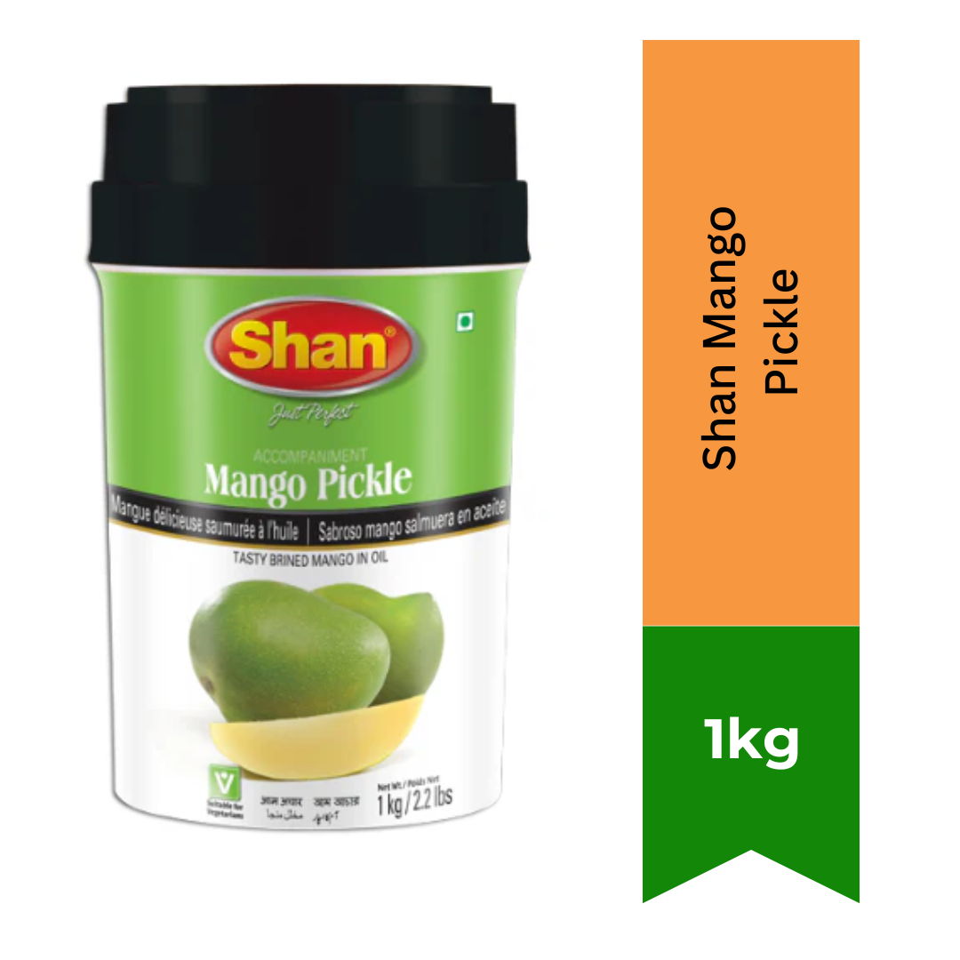 Shan Mango Pickle, prepared with world’s finest mangoes, marinated and prickled with a rich blend of spices is a tantalising accompaniment to your favourite meals. Mango Pickle is packaged and sealed in a Jar containing 1kg of delicious and spicy Pickle.