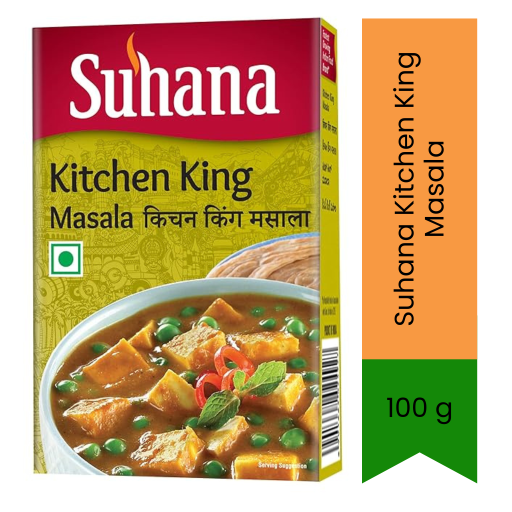 Suhana’s Kitchen King Masala is a premium blend of aromatic spices carefully curated to enhance the flavor of curries, vegetables, and gravies. It's a must-have pantry essential for anyone who loves authentic Indian cuisine.