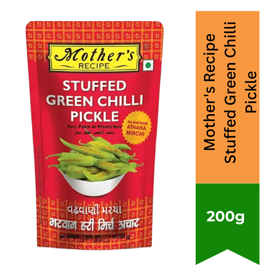 Spice up your meals with the bold and fiery flavor of Mother’s Recipe Stuffed Green Chilli Pickle – a classic Indian achar made from fresh green chillies, handpicked spices, and traditional recipes passed down for generations.