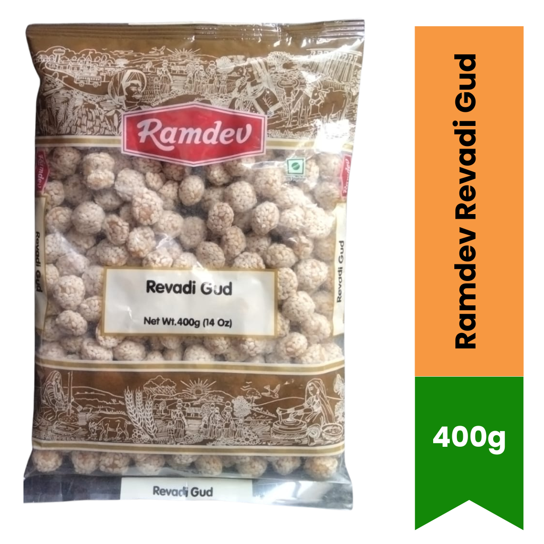 Delight in the traditional taste of India with Ramdev Revadi Gud 400g — a classic sesame and jaggery sweet perfect for winter and festivals. Made with premium sesame seeds and pure jaggery (gud), these bite-sized treats are crunchy, sweet, and packed with natural goodness.