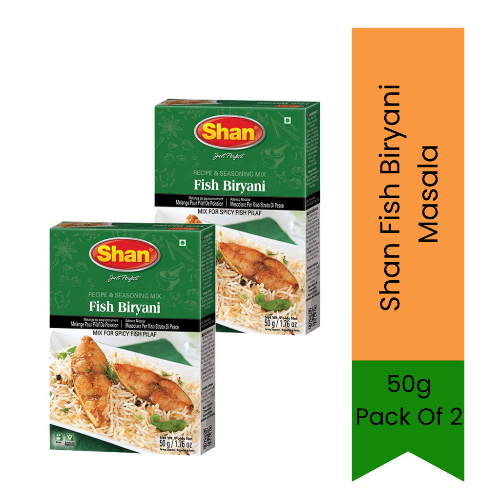 Shan Fish Biryani Mix | 50g (Pack of 2) delivers a refined blend for aromatic, perfectly spiced fish biryani every time.