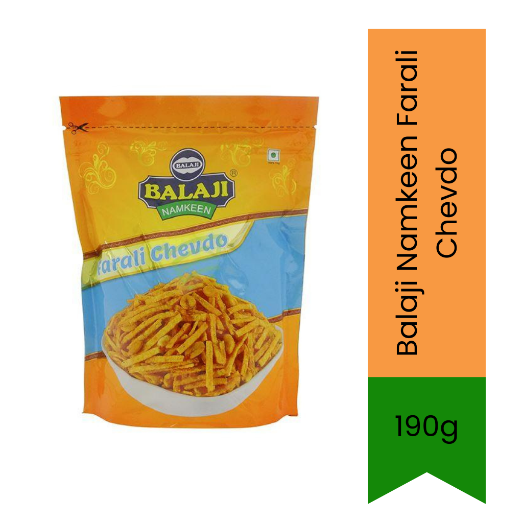 Enjoy Farali Chevdo. Enjoy its lightly spicy nature that is yummy, crispy and robust. Fried potato sticks mixed with the goodness of choicest of spices and peanuts makes for the perfect mouthwatering crunchy texture. Serve it fresh and crispy along with drinks and shake for the perfect mid-day snack! One of the high-demand namkeens of all time, Balaji is a brand that has won the trust of its customers for years. Top-notch quality and great taste make this namkeen a must-have in your kitchens!